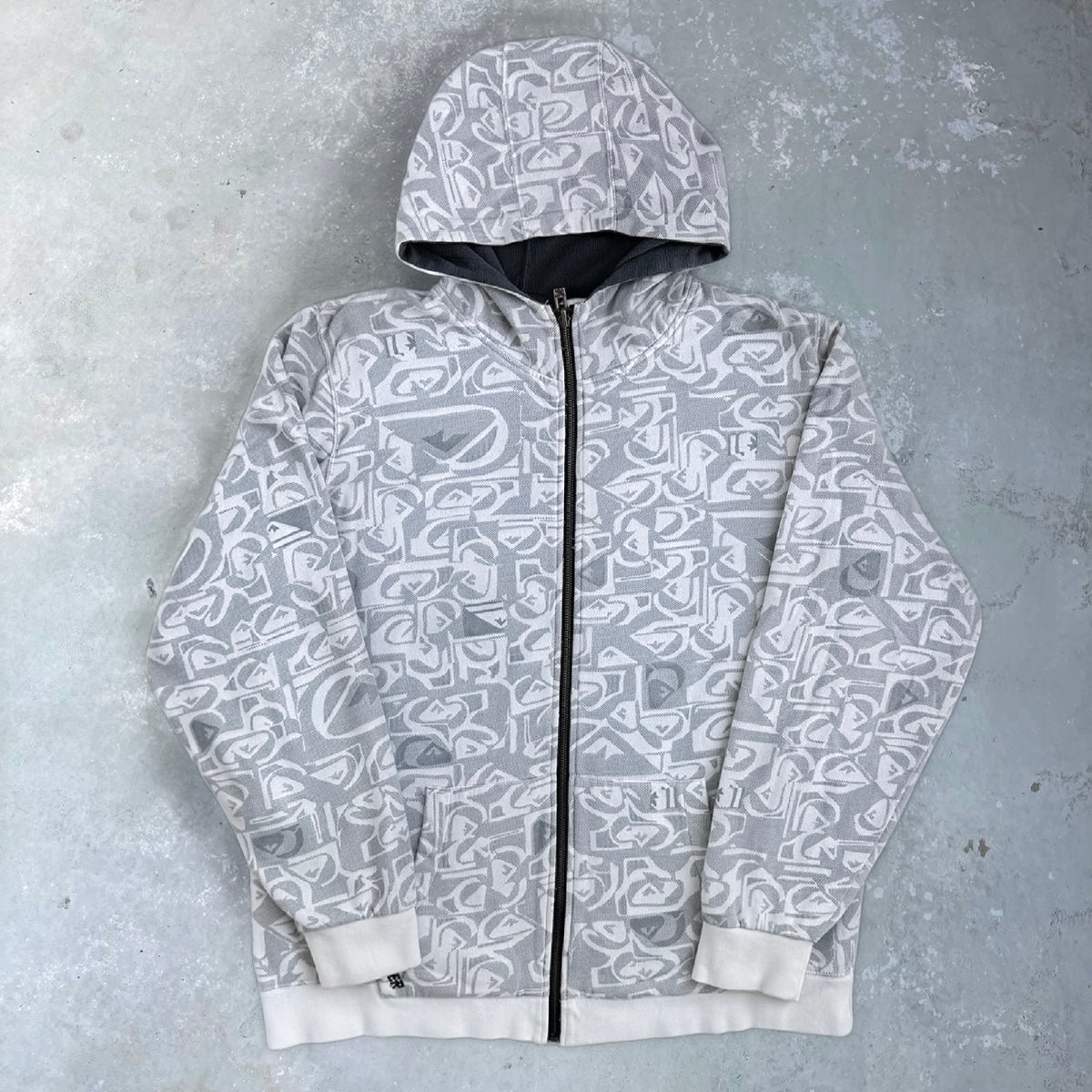 Vintage Quiksilver All-Over Print Zip Hoodie [L] – Grey